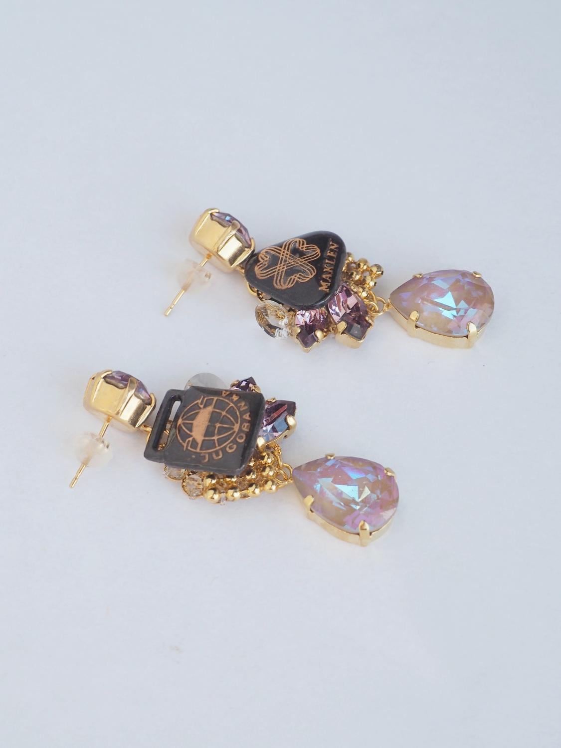 チェコヴィンテージパーツとビジューが織りなす一点物のピアス。古き良き時代の素材と現代的な感性の融合。