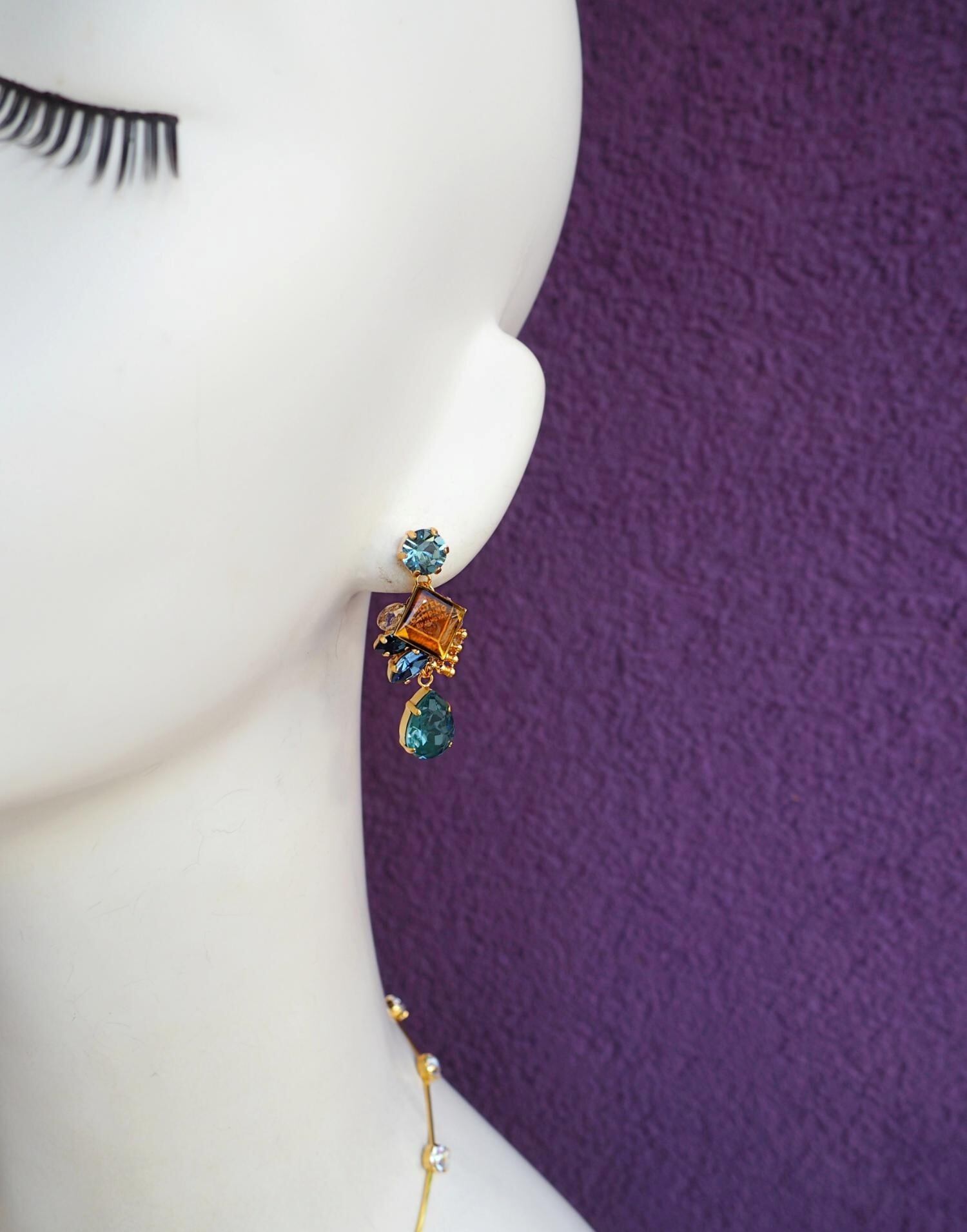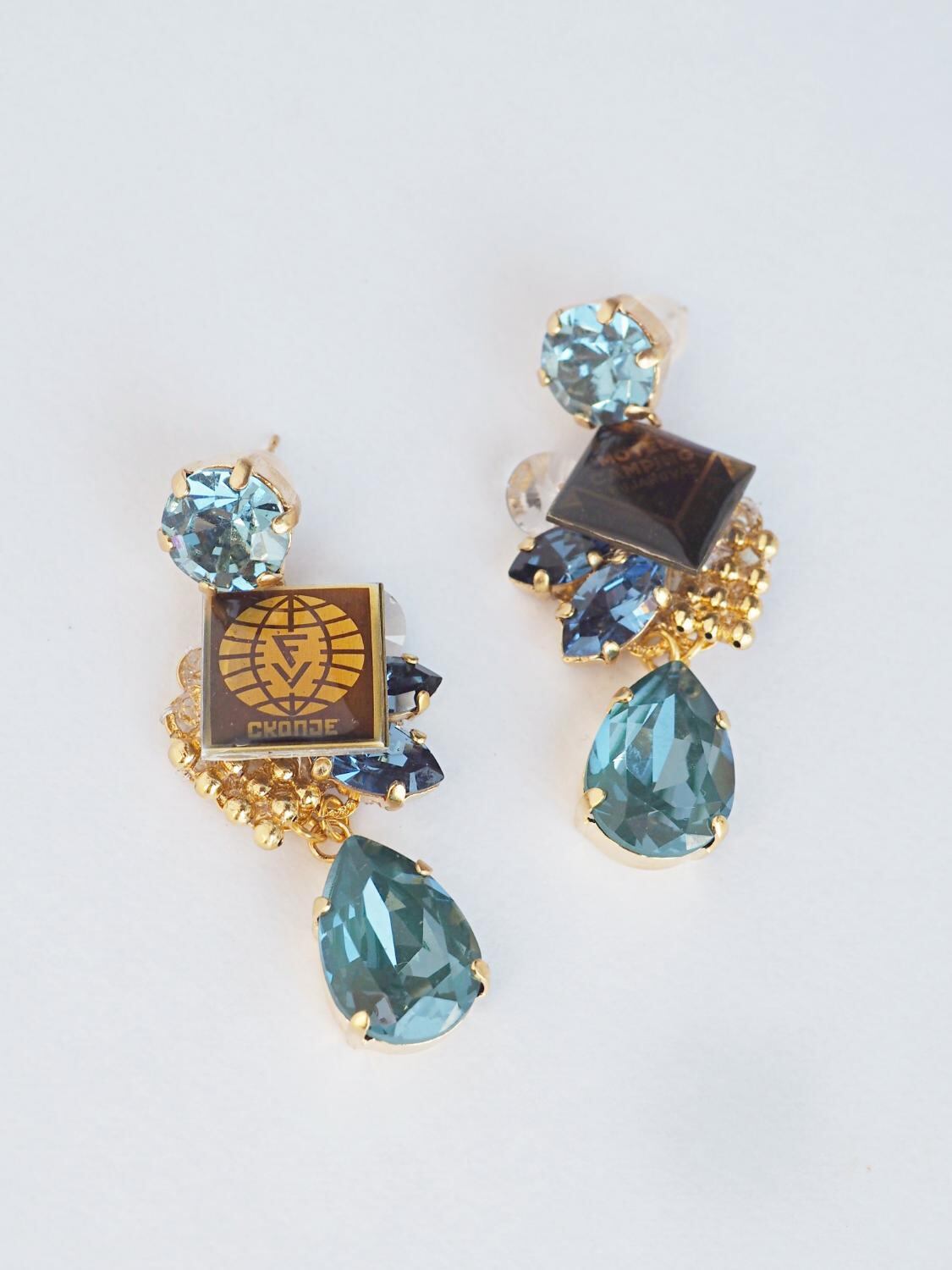 チェコヴィンテージパーツとビジューが織りなす一点物のピアス。古き良き時代の素材と現代的な感性の融合。