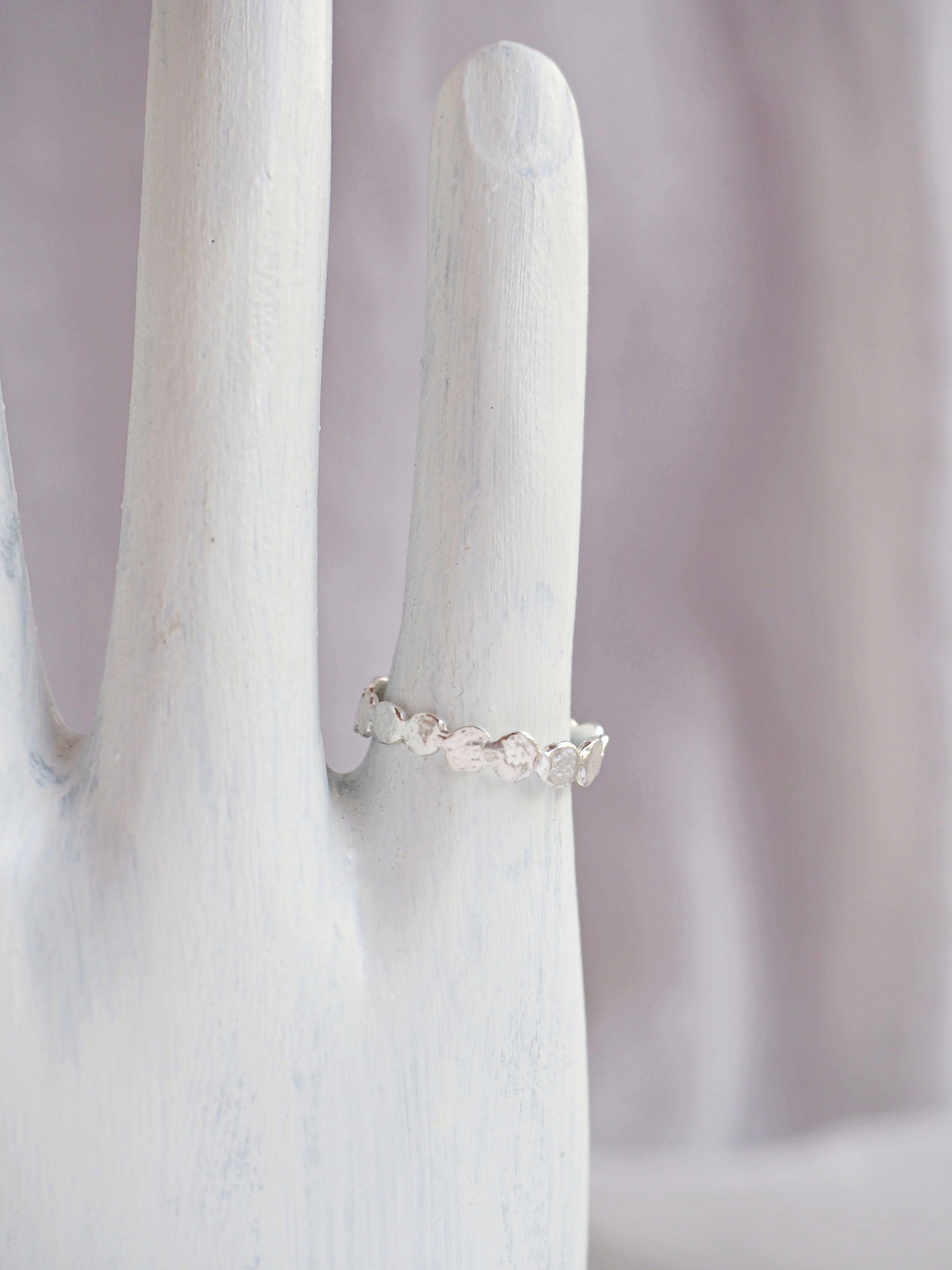 シンプルでありながら、表面の凹凸やテクスチャーが独特な風合いを演出し、指にしっくりと馴染みます。