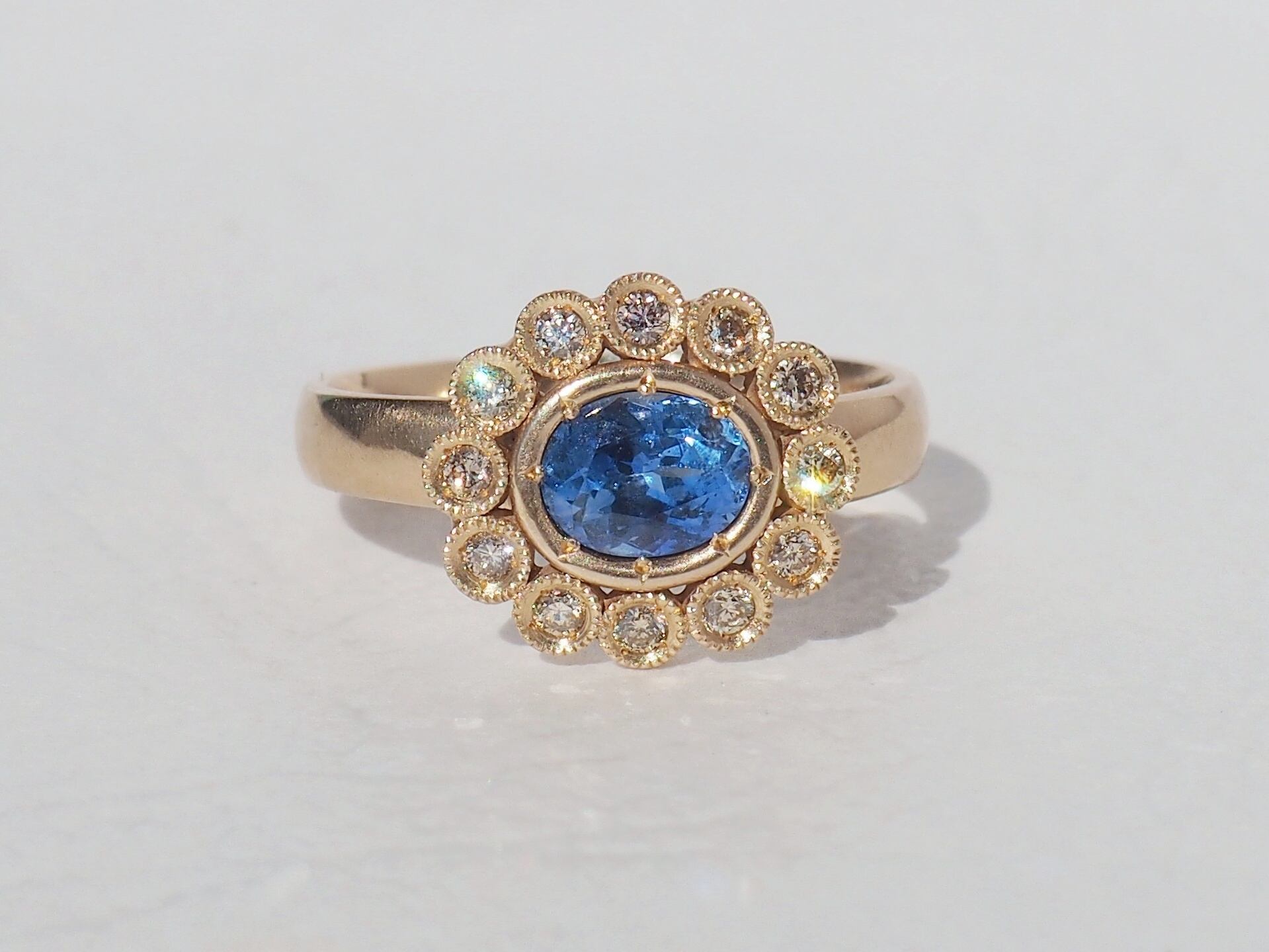 クラス感たっぷりのサファイア×ダイヤモンドリングは、あなたの指先に輝きを添える事と思います。